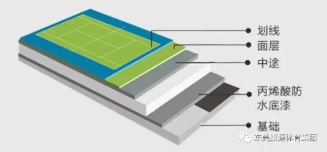(弹性层→面层→划线)